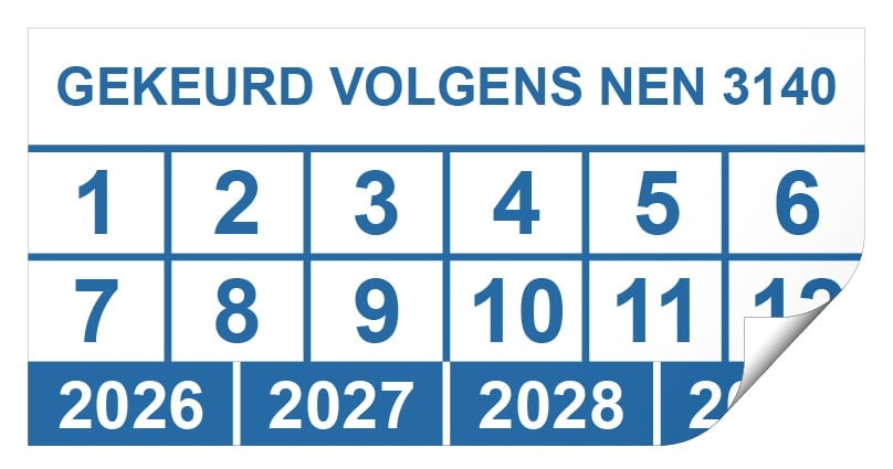De keuringssticker is gemaakt van zelfklevende folie en is voorzien van een laminaatlaag voor extra bescherming van de keuringssticker. Door de permanente kleving is de keuringssticker geschikt voor binnen en buiten. De NEN 3140 keuringssticker is te verkrijgen in verschillende afmetingen en aantallen.