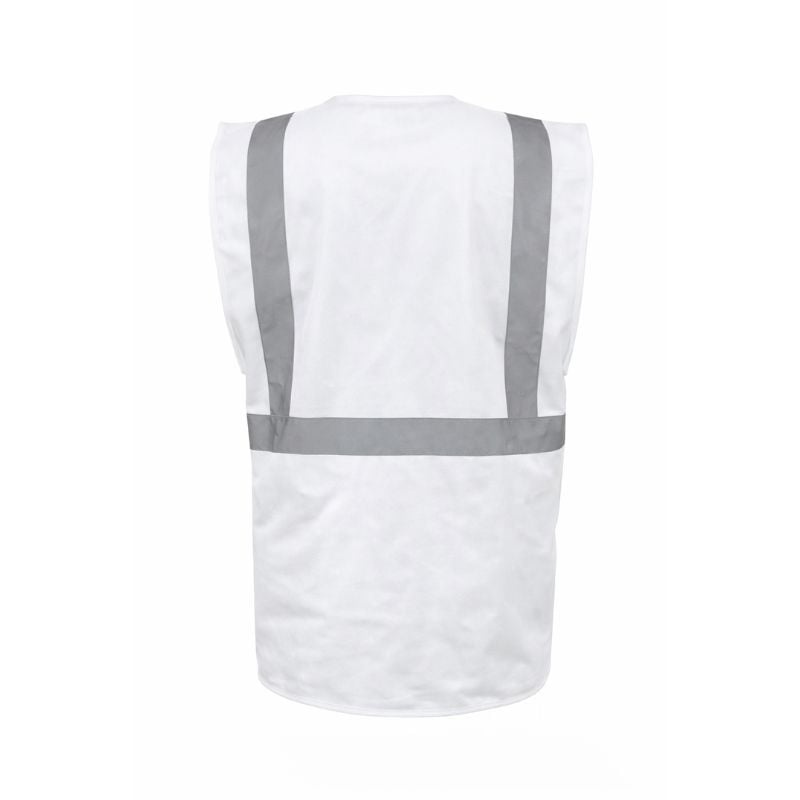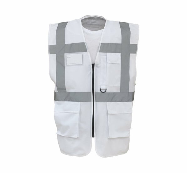 Het RWS veiligheidsvest met rits wit zorgt voor veiligheid op de werkvloer, in openbare ruimtes en tijdens evenementen. Het veiligheidshesje valt extra goed op door de kleur wit en de 5 cm brede reflectiebanden rond het lichaam en over beide schouders die oplichten in het donker. Het hesje is gemaakt van 100% polyester en heeft een ritssluiting. De toegankelijke zakken en sleutelhouder zorgen ervoor dat je pennen , sleutels, mobiele telefoons en walkie-talkies makkelijk mee kunt nemen. Door het dragen van deze veiligheidshesjes met rits zorg je ervoor dat je bij een calamiteit goed opvalt.